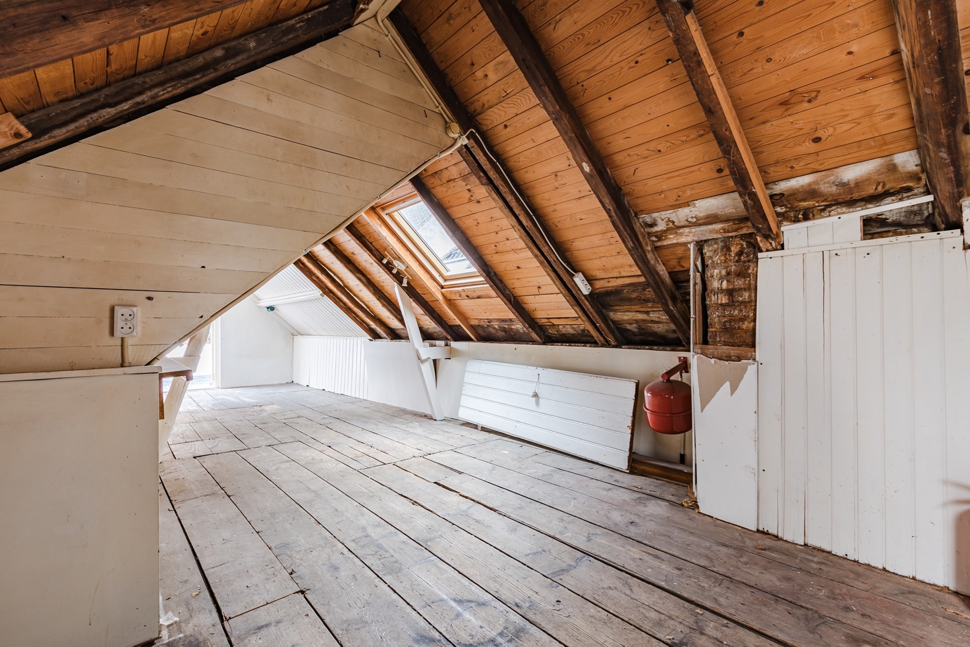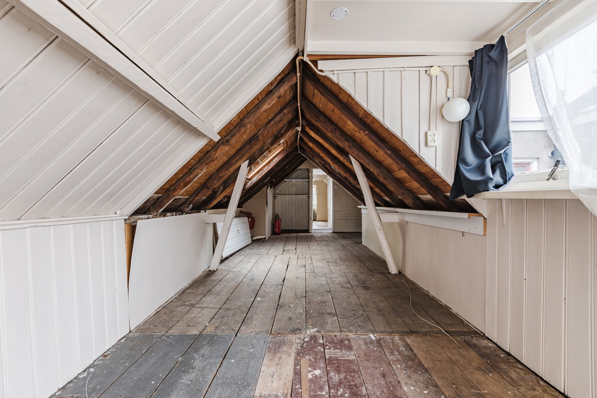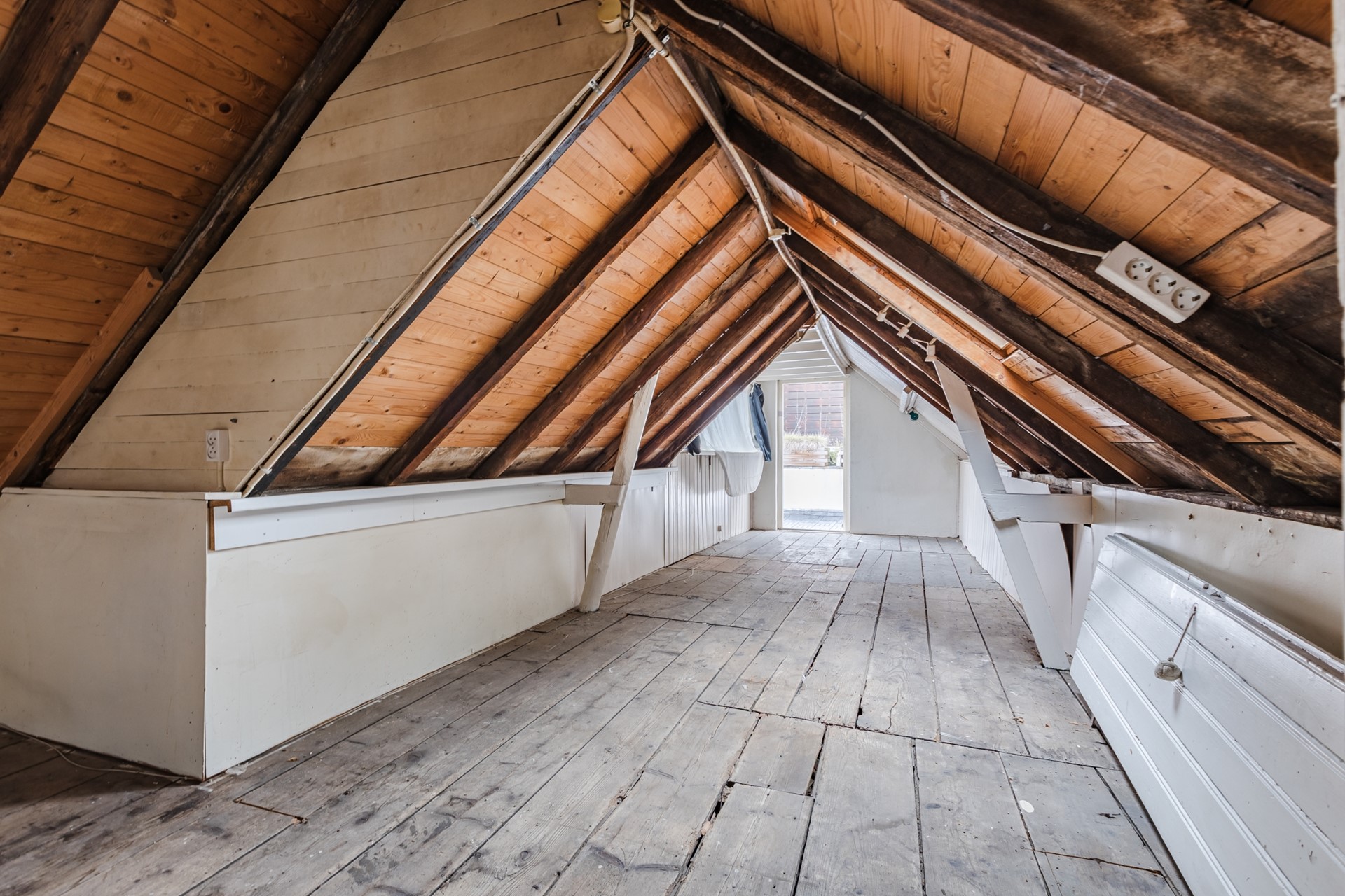 Via de trap in de woonkamer bereik je de tweede verdieping met een derde slaapkamer in de nok: knus en sfeervol. Daarnaast is er een ruime zolder-/bergruimte met de mogelijkheid om een extra kamer te realiseren. Ook op deze verdieping is er ruimte voor modernisering. Vanuit deze etage heb je toegang tot het dakterras.
